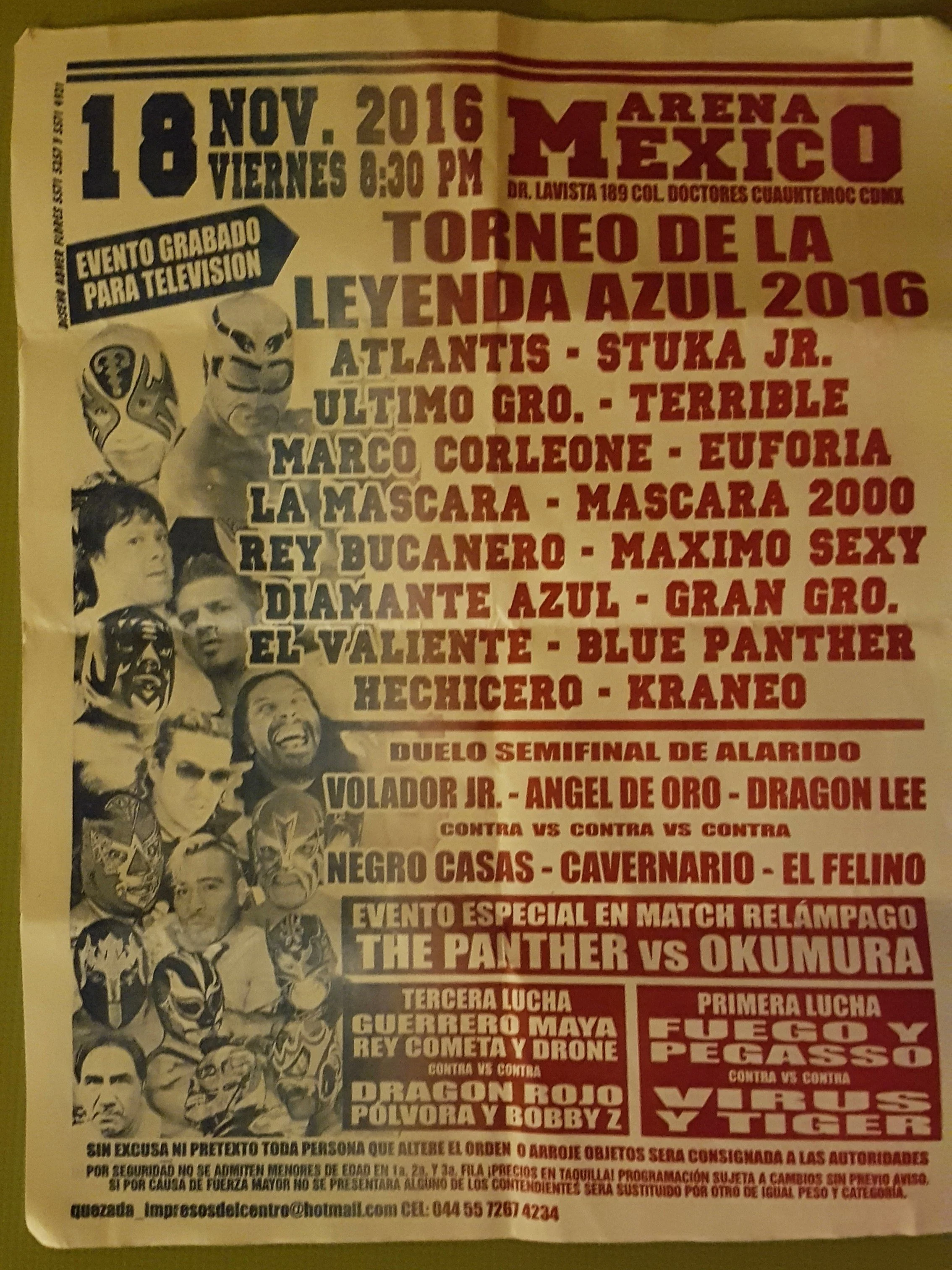 The first time I visited CDMX, I was lucky enough to be in town for the “Torneo de la Leyenda Azul 2016” (youtube). Without any background knowledge of just how spectacular this event would be, I simply bought a ticket to see Lucha Libre.